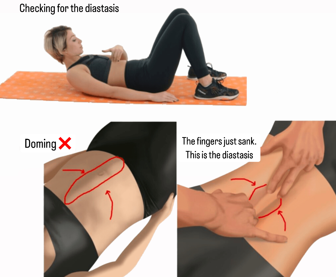 Check how long the diastasis is along the linea alba of the abdomen. I recommend to write it down.